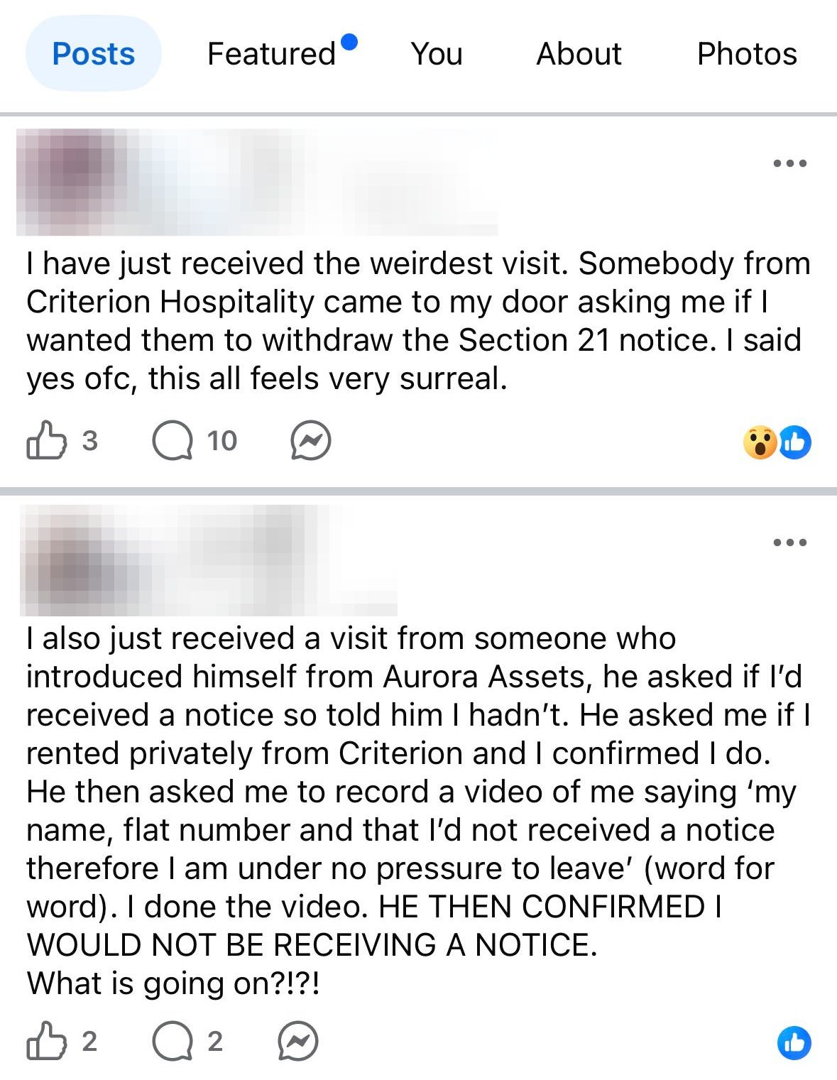 Baffled residents described how they began receiving door knocks from Criterion staff, asking them to record a video identifying themselves and read from a script stating they no longer wished to be evicted by the company. Nothing was written down and residents did not receive paper confirmation that their eviction had been abandoned.