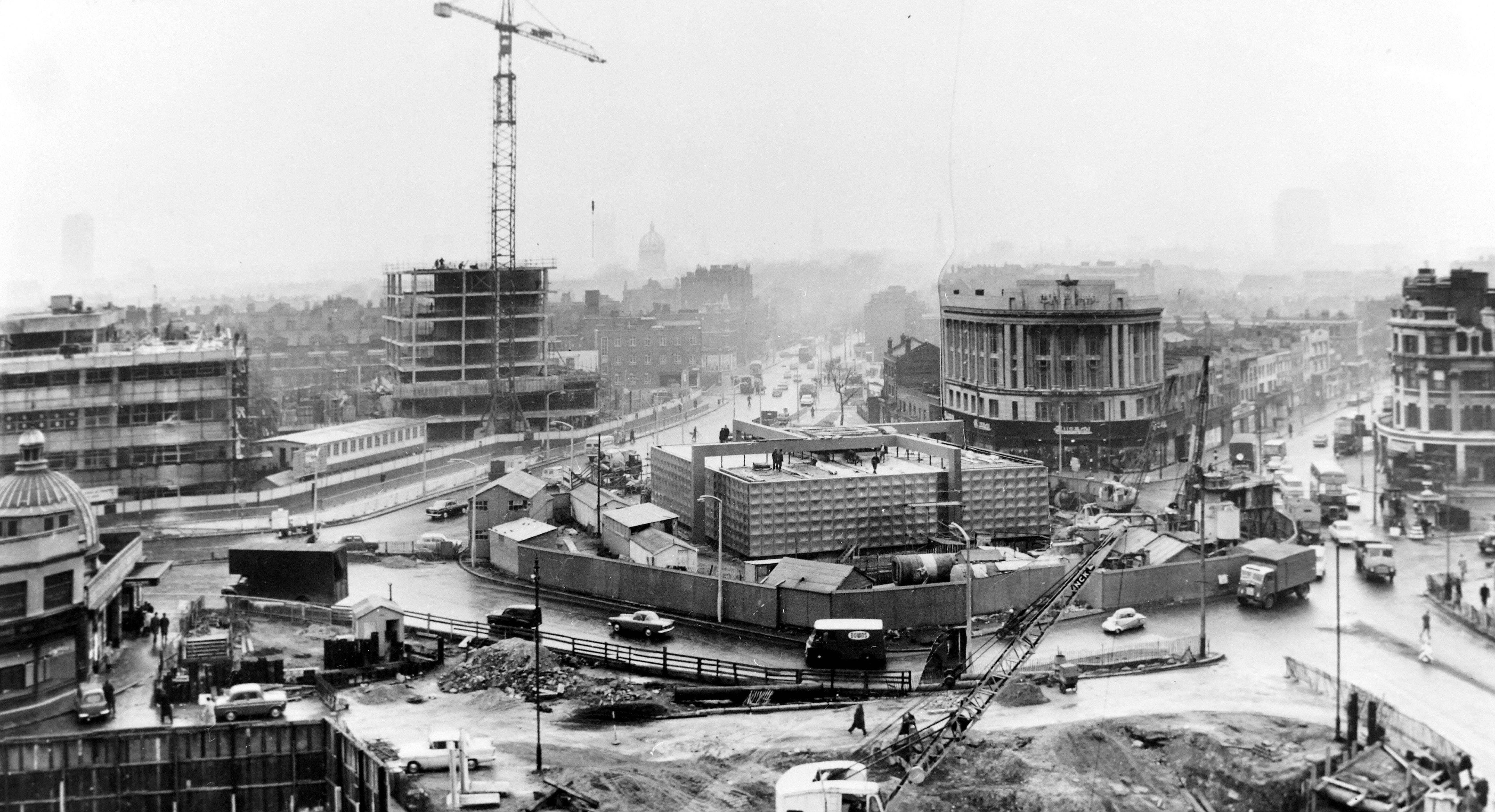 During World War Two it was badly bombed with most of the remaining Victorian buildings cleared to enable it to be reimagined as a bold vision of London built around the private motor car, designed to prioritise the flow of traffic and allow people to drive to the newly-built shopping centre.