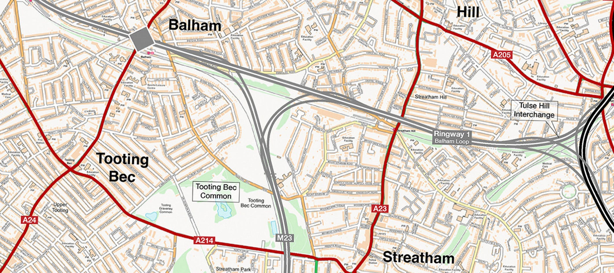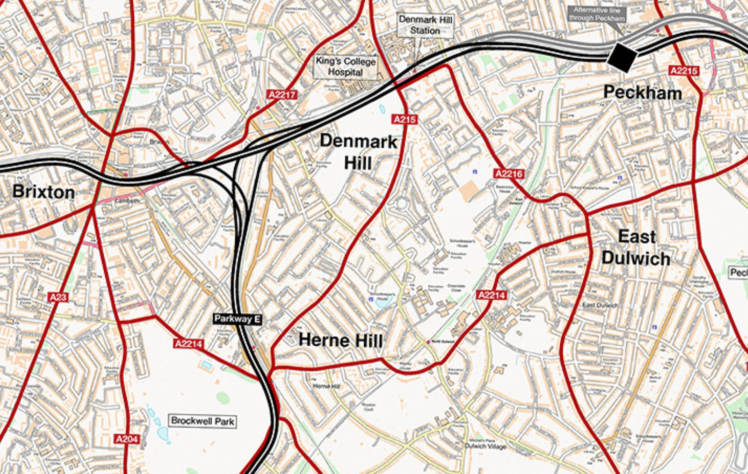 Peckham, Denmark Hill, and Brixton would have had their centres bisected by a giant concrete motorway — while the residents of Herne Hill would have had a giant parkway covering the cafes of Railton Road and winding its way around the edge of Brockwell Park. After demolishing much of Upper Norwood and Crystal Palace, it would link-up with Ringway 2, a motorway that would replace much of the area around Thornton Heath.