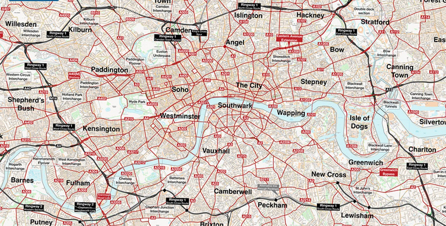 One person who’s even more fascinated with the Ringways than me is Chris Marshall, who describes it as “the most astonishing and destructive thing never to happen to London”. He’s spent two decades piecing together what he believes to be the first truly accurate map ever made of the abandoned plan to cover London under US-style motorways. This week he finally published it and has taken the time to talk it through with London Centric readers.