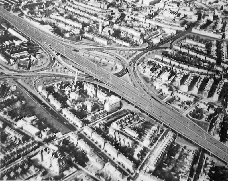 Vast chunks of London’s Victorian housing and public parks would have to be obliterated to make room for these giant roads — but that was seen as just a necessary evil given the seemingly inexorable rise of the car.