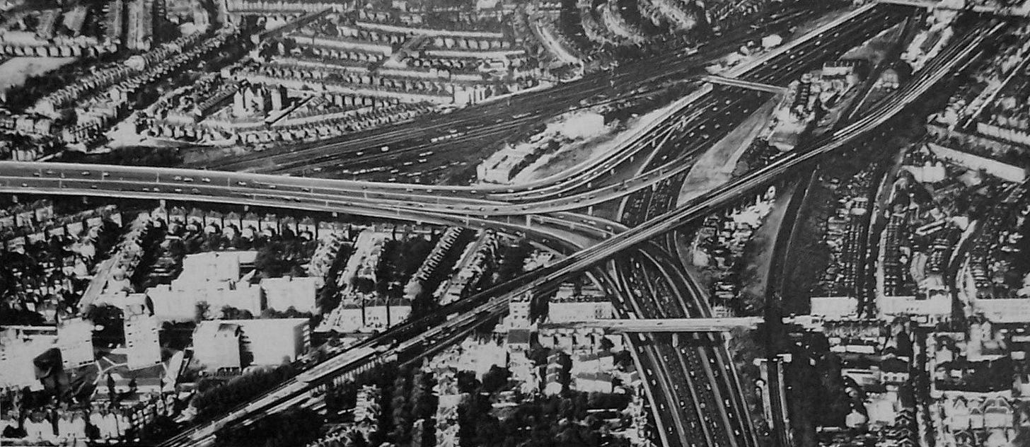 If this artist’s impression of the planned Kilburn interchange in north west London looks like a picture from US city, that’s because that’s where planners were taking their inspiration from. The designers looked at how American cities were responding to the growth of cars and proposed to copy their solution of blasting giant roads through suburbs and urban centres.