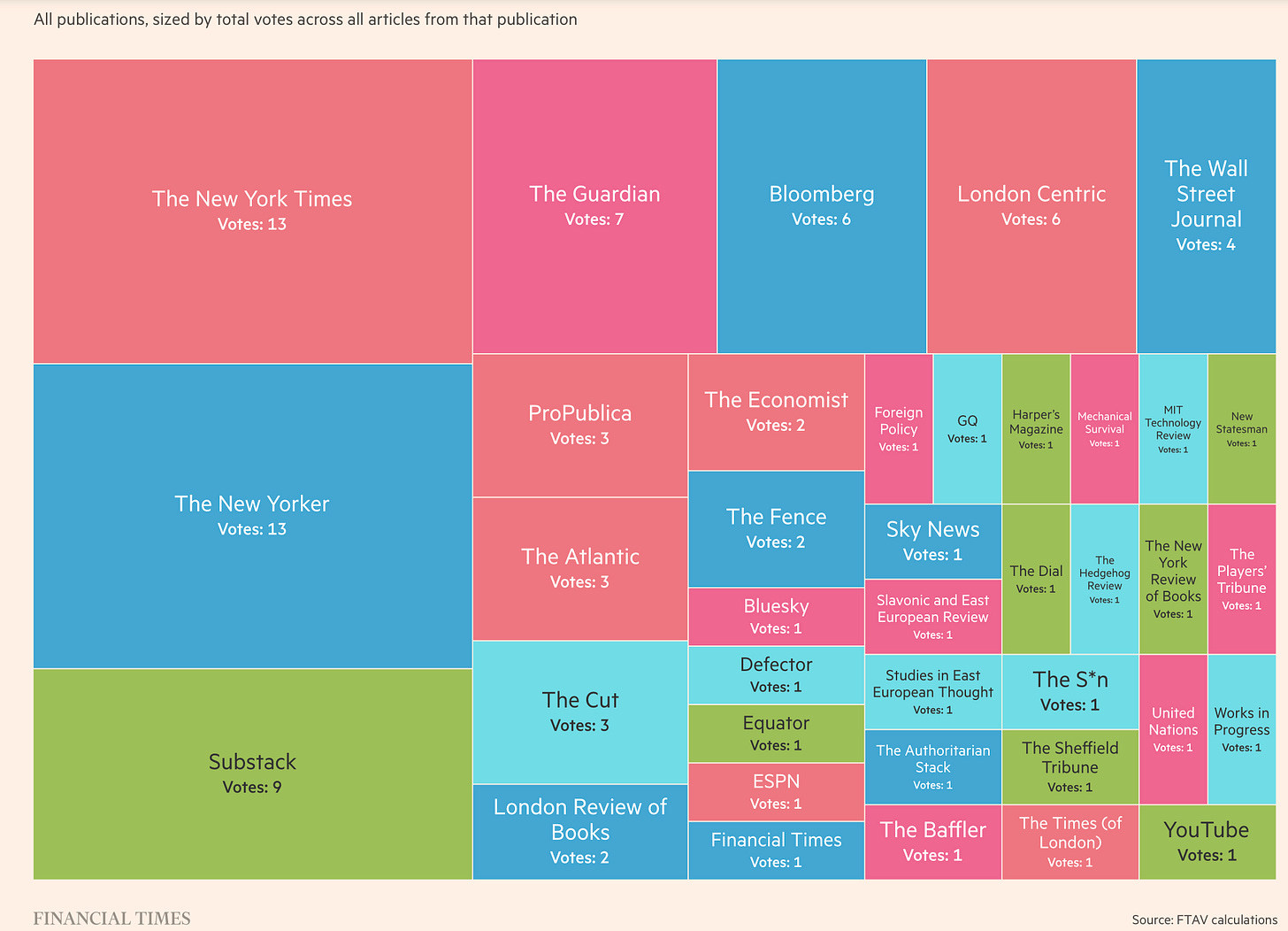 Last week the staff of the Financial Times issued their list of the stories they wished they’d published, which is always a year-end highlight full of long reads to gorge on.