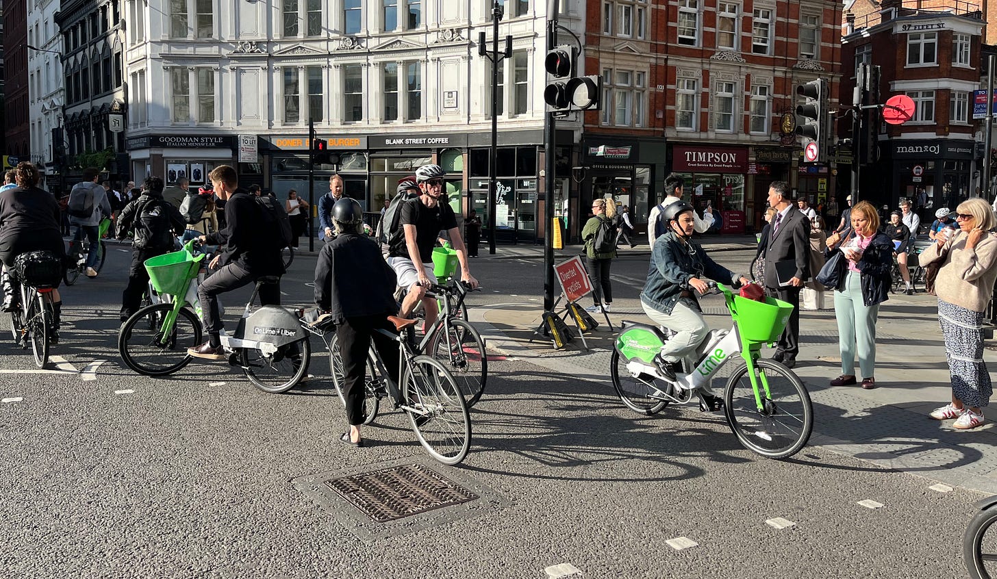 The strategy seems to have worked. Standing at Ludgate Circus near St Paul’s Cathedral with a clicker at 9am this morning, we counted 81 Lime e-bikes* pass us during a single change of the lights. While many of these people would already be commuting this way, it’s likely that others have decided to try something different. One London Centric reader got in touch to say “there doesn’t seem to be a single Lime bike in Islington or Hackney right now”.